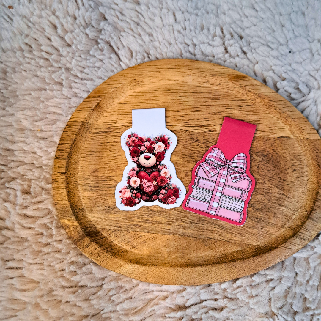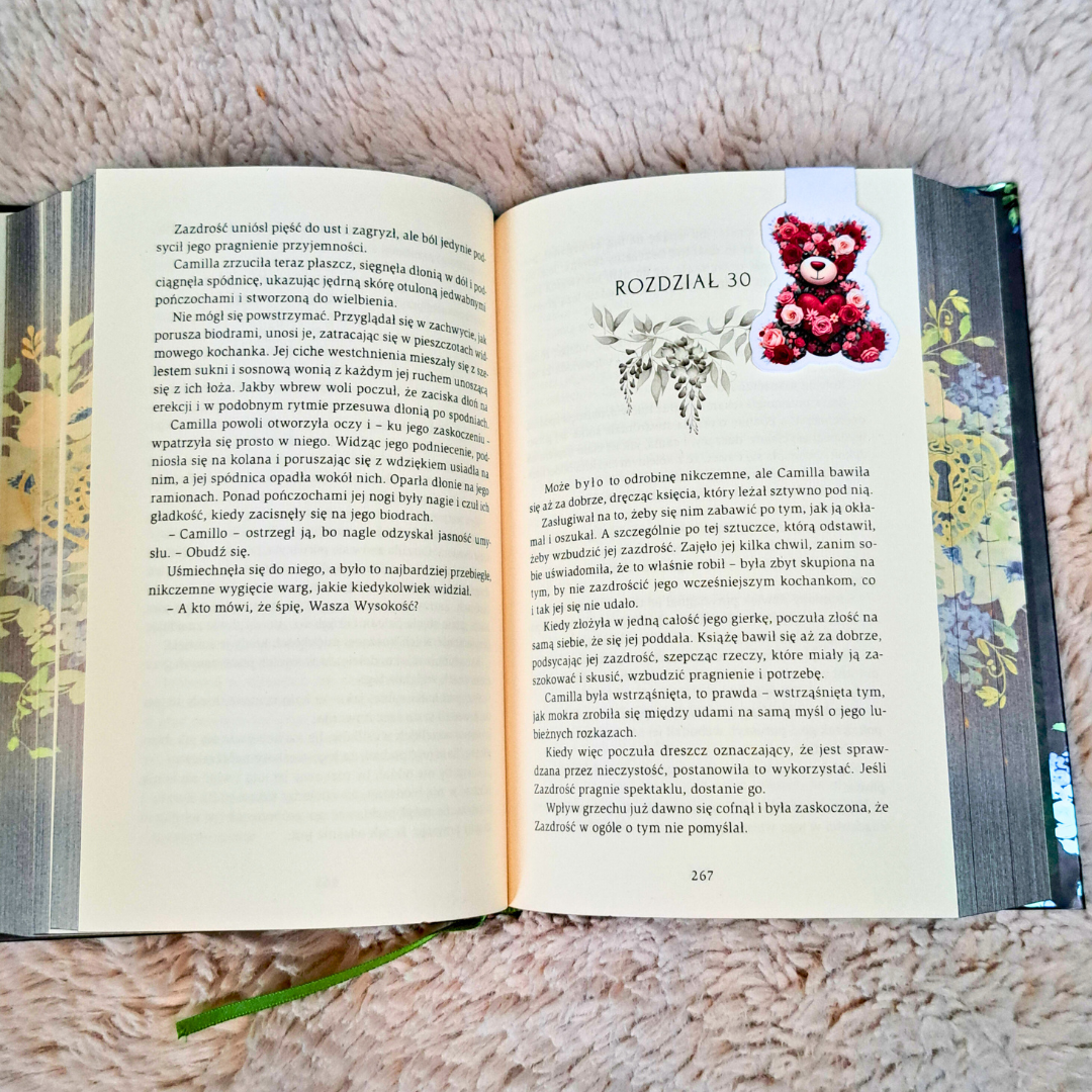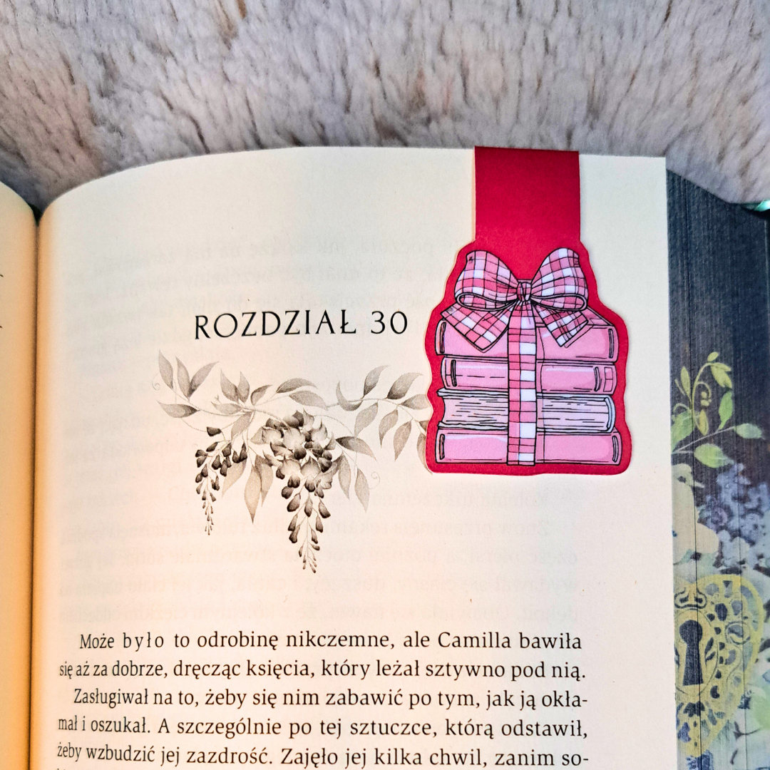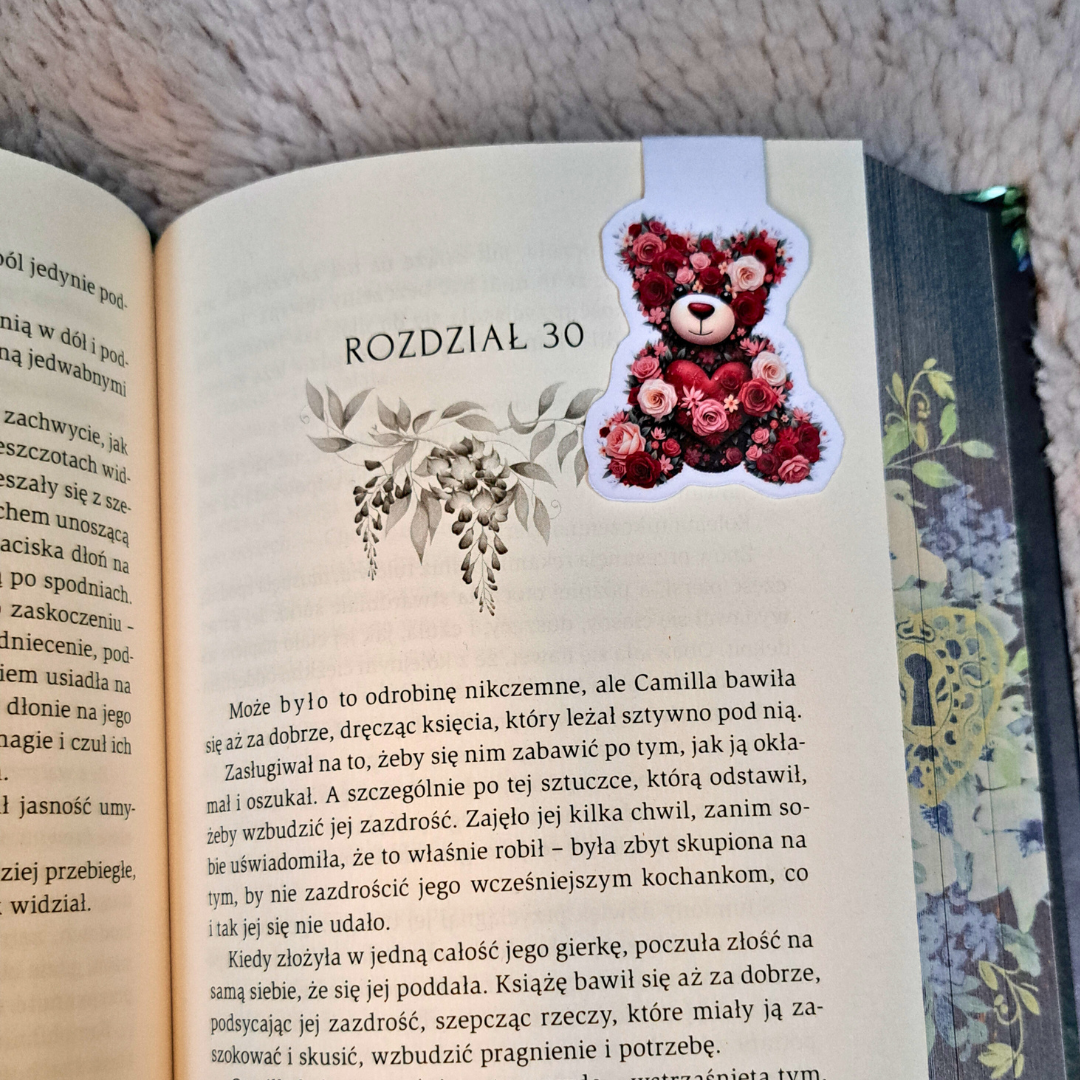 Zakładki Sweet Romance to idealny sposób na celebrowanie miłości do książek, szczególnie tych z Twojego ulubionego gatunku romance. W komplecie znajdziesz dwie magnetyczne zakładki: uroczego misia ułożonego z czerwonych róż oraz stos różowych książek przewiązany ozdobną kokardą, które wspólnie tworzą niezwykle ciepły i romantyczny klimat.